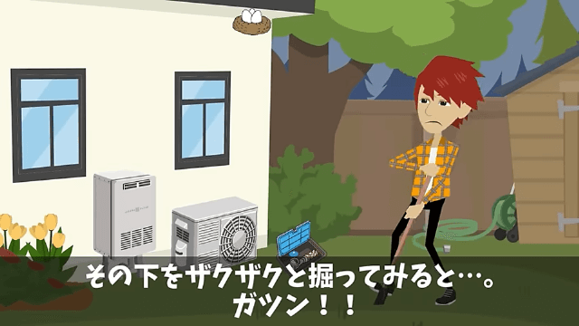 新しいオーナーが排水管に細工を施したのだと考えた主人公は、スコップを持って庭に向かいました。 そして何の変哲もない普通の排水管の周りを掘ってみると…。
