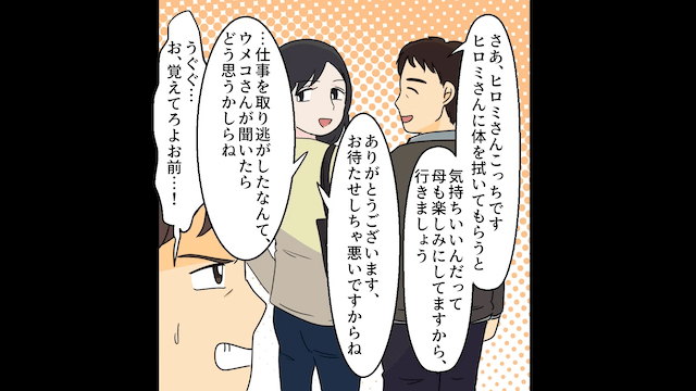 今回は『夫「母さんの介護よろしく。嫌なら離婚な」⇒お望み通り離婚した結果』を紹介します。 訪問看護師として働く主人公が患者の家を訪問すると、元夫に遭遇しました。 なんと元夫は患者の家族に、主人公の悪口を言い始めて…。