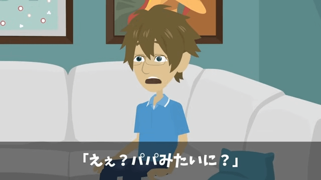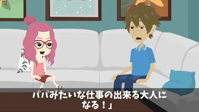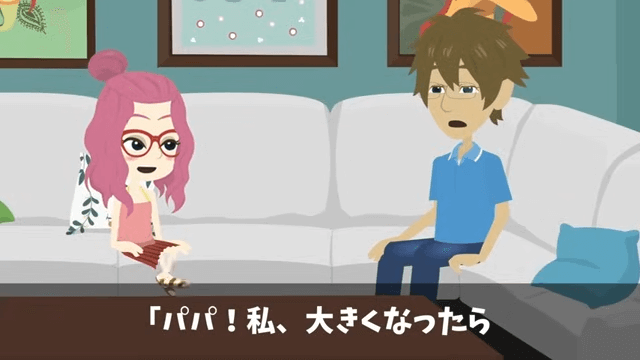 父に褒められた主人公は「やっぱりいくつになってもパパに褒められるのってうれしいなぁ」と喜びました。 主人公は幼いころから、父のような仕事ができる大人になりたいと考えていて…。