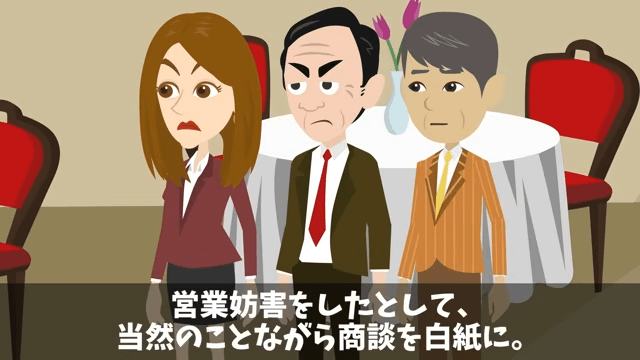 主人公から聞いていた嫌がらせの話が事実だとわかったため、大手企業の社長は2人を徹底的に糾弾しました。 当然のことながら商談も白紙になり…。