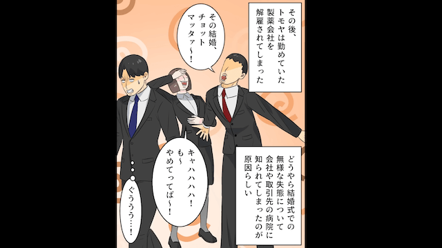 主人公は元夫に「あなたと離婚したことはやっぱり、一点の曇りもなく大正解だったわ」と伝え、元夫の目の前で医師との愛を誓いました。 その後、結婚式での失態が会社にバレた元夫は解雇になり、ストレスを抱えながらアルバイトをすることに。