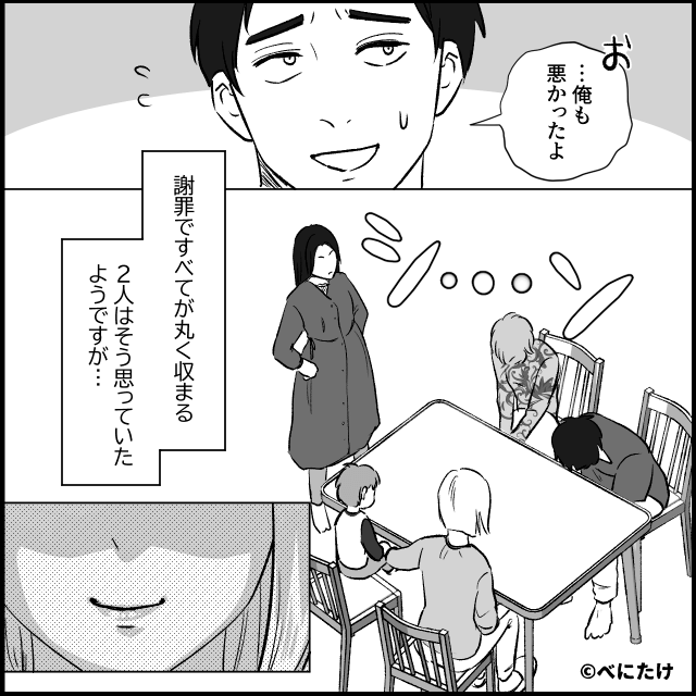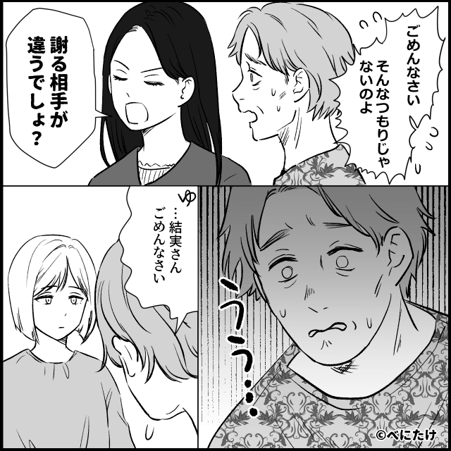 主人公たちが言い合いをしていると、義妹が登場。 義妹は母親の立場になったことで、主人公の気持ちを理解したと言います。 そして義妹に「私の子どもが生まれても会わせないから」と言われ、焦った義母と夫は主人公に謝罪をしたのでした。