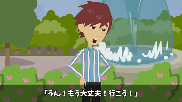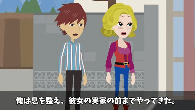 深呼吸をして落ち着いた主人公は、彼女と一緒に彼女の家に行くことに。 そして彼女の家の前までやってきたのですが…。