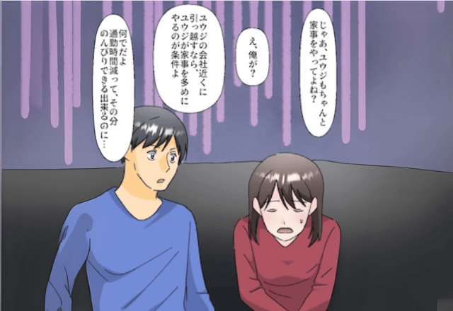 「引越し先は俺の会社の近くの部屋」と言い、勝手に決めてしまった夫。 そこで主人公は、夫が家事を多く引き受けることを条件に、夫の意見に合わせることにしました。