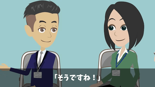 合否を心配している女性に「気楽にいきましょう」と声をかけた主人公。 自分も緊張していることを伝えると、女性は安心したようでした。
