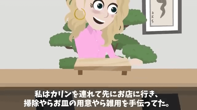 ランチ会の当日、父は2時間だけお店を貸切にしてくれました。 そして主人公は娘を連れて先にお店に行き、掃除や雑用などを手伝います。
