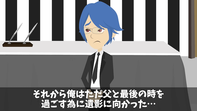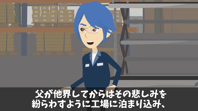 担当者が帰ったあと、騒がしくしたことを謝罪してくれた社員たち。 主人公は自分の代わりに怒ってくれた社員たちに感謝し、その後は父との最後のときを過ごします。
