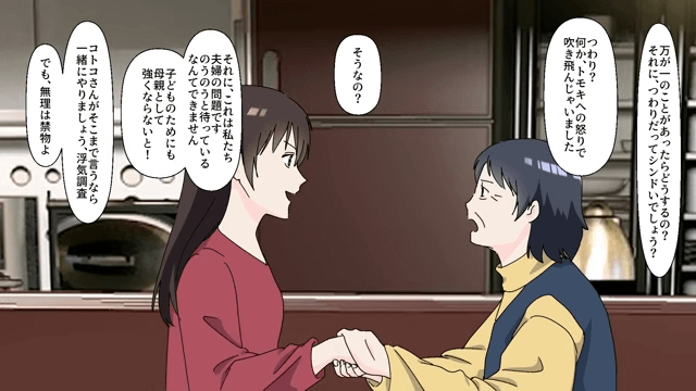 義母から夫の浮気について教えてもらった主人公は、義母と一緒に浮気調査をすることにしました。 一方、店員と2人で遊園地に来ていた夫は、店員と親しげに抱き合い…。