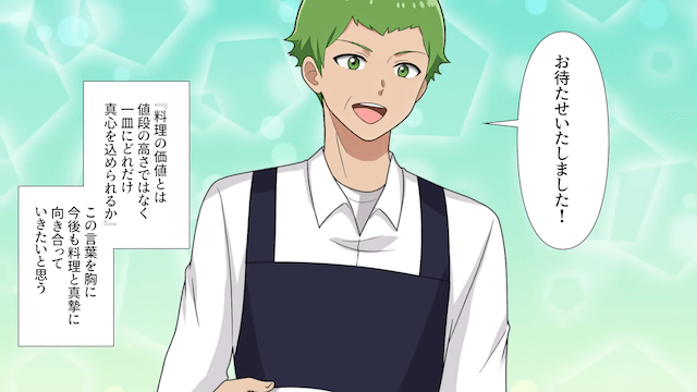 そして告発できずに後悔していたスタッフは主人公の店で働くことになり、フランス料理店の跡地には若手の料理人が店を開業したのでした。