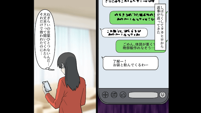 今回は『第一子の妊娠中に義母と飲みに行く夫の末路』を紹介します。 妊娠中の主人公は、専業主婦として夫を支えています。 しかし夫は主人公と義母の料理を比較し、文句を言ってくる始末で…。