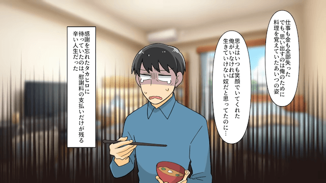 夫はトボトボと去っていき、つらい人生を送ったのでした。