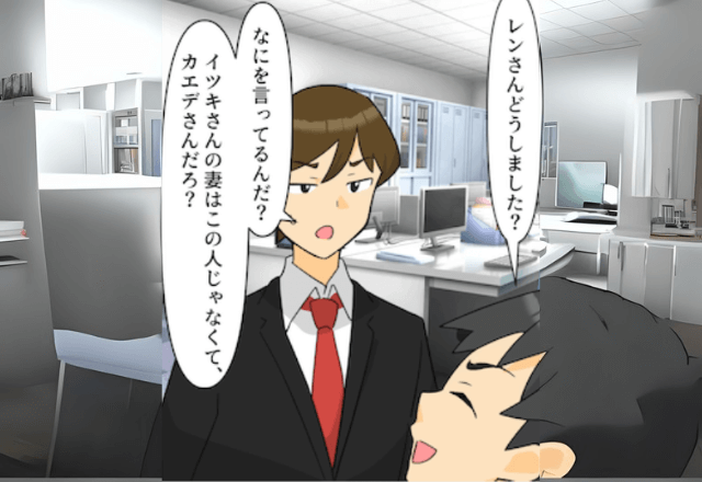 本当の妻が主人公であることを知っている社員が、夫の嘘を指摘してくれて…。