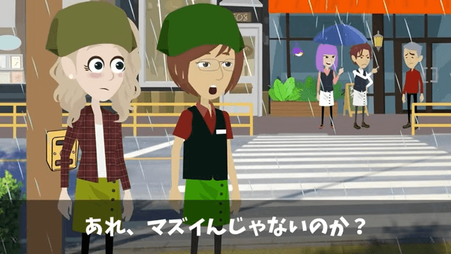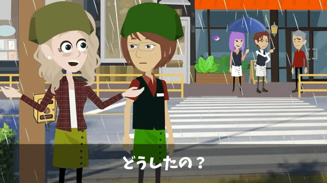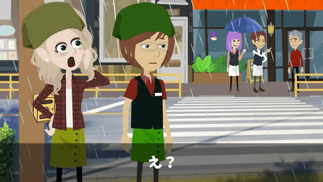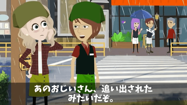 主人公は何かを見ている夫に「どうしたの?」と尋ねました。 夫の説明により、老人が隣の店から追い出されそうになっていると知ります。