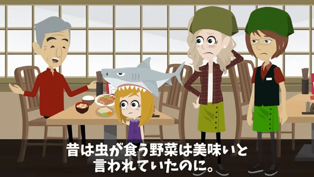 主人公はデマのせいで、店に全然客が来なくなったことを伝えました。 すると老人は「昔は虫が食う野菜は美味いと言われていたのに」と話し始め…。