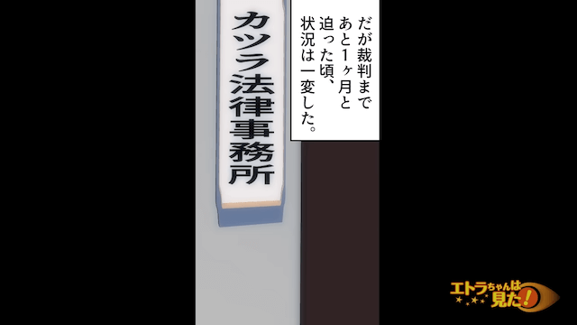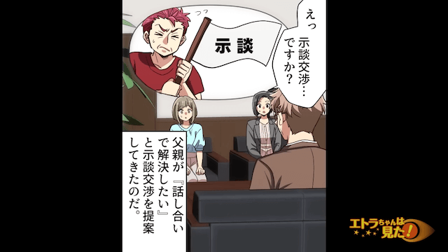 そのため、今回こそは裁判に勝てるかもしれないと主人公が必死になっていると、状況は一変し、幼なじみの父親が示談交渉を提案してきて…。