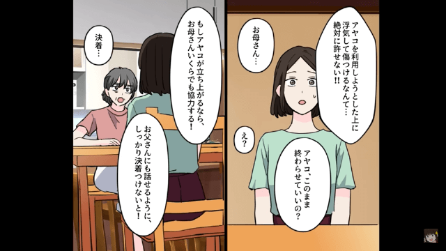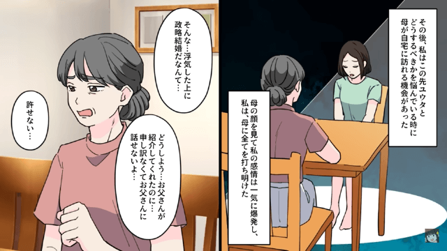 婚約者は主人公との交際が、父の会社に取り入りたい義母が仕組んだ政略結婚だったことを明かしました。 そして婚約者の言葉に深く傷ついた主人公でしたが、母に背中を押されて立ち上がることに決めたのです。