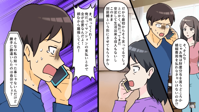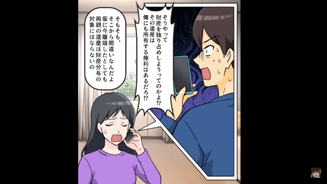 主人公は弁護士をしている先輩に相談し、夫への反撃のため、まだ離婚届を出さず婚姻費用を請求しようと考えていました。 さらに主人公は、両親の遺産が財産分与の対象にならないことを夫に告げたのです。