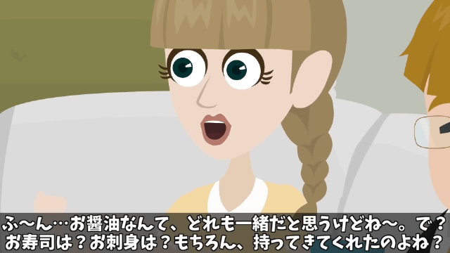 主人公は義両親のため、寿司や刺身によく合う醤油をお土産として持ってきていました。 しかし義母は感謝もせず「で?お寿司は?お刺身は?もちろん、持ってきてくれたのよね?」と言い…。