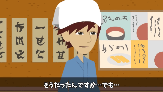 男性は親方が若いころに男性の経営する店で働いており、寿司職人になる修行を積んで店を開いたことを教えてくれました。 主人公は親方と男性の意外な関係性に驚きつつ、それでも親方のそばを離れられないと思っていたのですが…。