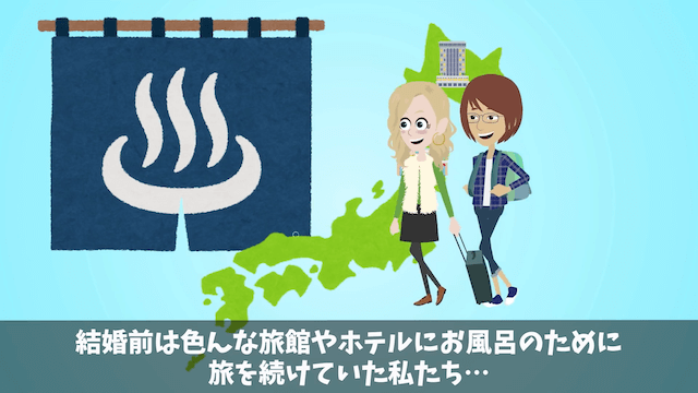 主人公夫婦はお風呂のために旅行をするほど、大のお風呂好きで…。