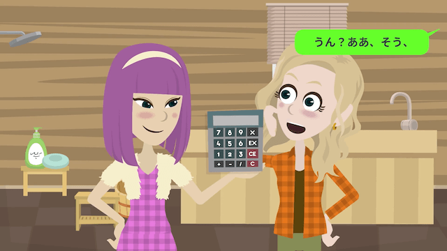 こだわりのお風呂に、ママ友を案内することにした主人公。 娘たちには羊羹を食べるように伝え、主人公はママ友とお風呂に移動します。