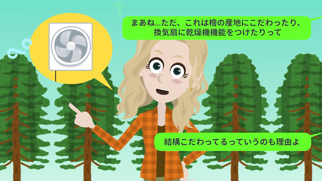 そしてひのき風呂を見たママ友は驚いて予算を聞いてきたため、主人公は正直に答え、こだわったポイントも伝えたのでした。
