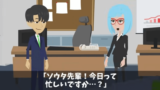 今回は『無遅刻無欠席なのに有休が無かった理由』を紹介します。 昔から人と接することが好きな主人公は大学卒業後、営業部希望で今の会社に入社しました。 ある日、主人公は後輩から「今日って忙しいですか…?」と声をかけられます。