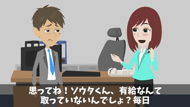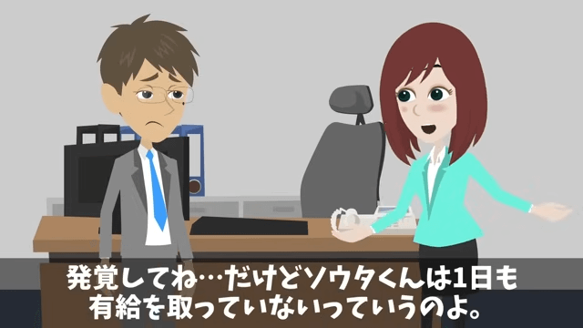 部長は主人公が有給を取っていないことを課長に確認します。 すると課長は「どうして今そんなことを聞くんだ…」と焦りました。