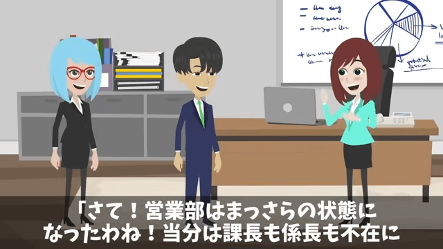 経費の水増しがバレた課長たち3人は倉庫整理に飛ばされます。 そして営業部には課長も先輩もいなくなったため、部長が統制を取ることになりました。