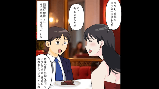 寂しがらない主人公を見て、ないがしろにされていると感じていた夫。 夫の気持ちを知った主人公はきちんと話し合い、それから主人公夫婦はより一層仲よくなります。
