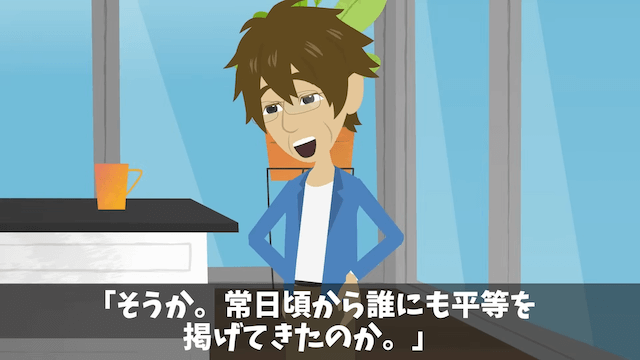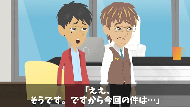 主人公を指導しなければいけないという思いがヒートアップして今回の件に至ったと、反省した様子で話す部長。 しかし心の中では、この場を切り抜けるための作戦を練り、なんとか許してもらおうと考えていました。