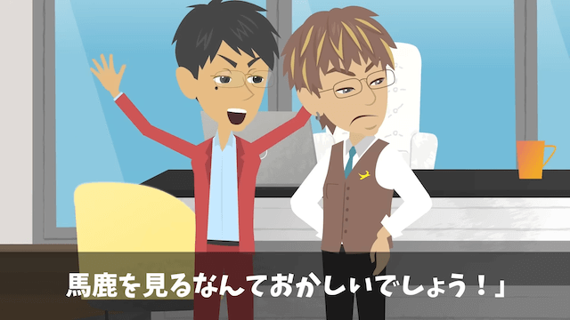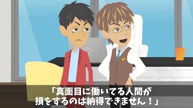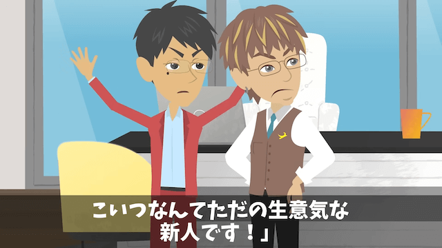 主人公が義父の懐に入るために妻をたぶらかしたと勝手な主張をする課長と部長。 主人公のせいで自分たちが損をしていると感じ、2人は主人公を責めます。