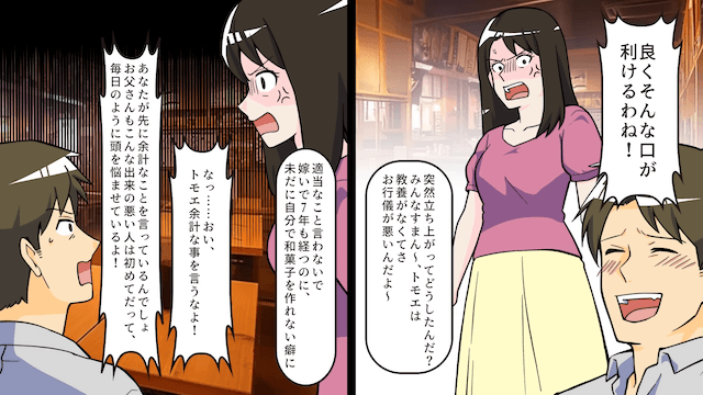 今回は『離婚した夫が「生前贈与はまだか?」と言うのですぐに手続きを済ませた話』を紹介します。 主人公の実家は、地元では有名な老舗和菓子店です。 主人公は夫と一緒に、父の手伝いをしていて…。