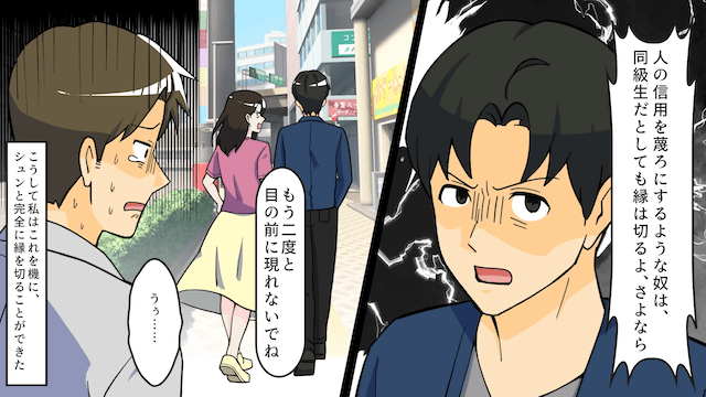 元夫は自分の両親を頼りますが、主人公から事情を聞いていた両親は元夫に激怒し、勘当を言い渡します。 その後、元夫は主人公に頼ったものの、突き放されて…。