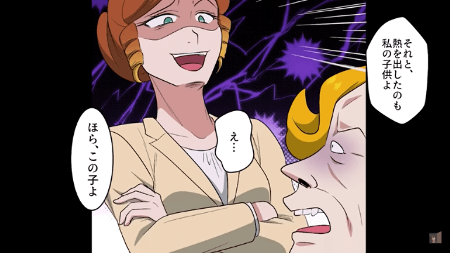 部長が主人公の企画書を破いていると、遅れて出社した社長が声をかけてきました。 そして社長は主人公の企画書を手伝ったことや、熱を出したのは主人公の子どもではなく自分の子どもであることを明かして…。