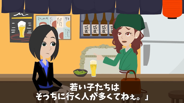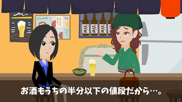 あるとき、母の店の客が減っていることに気づいた主人公。 母に話を聞くと、近所にできた新しい店が料理もお酒も安く、若い客は皆その店に行ってしまうということでした。