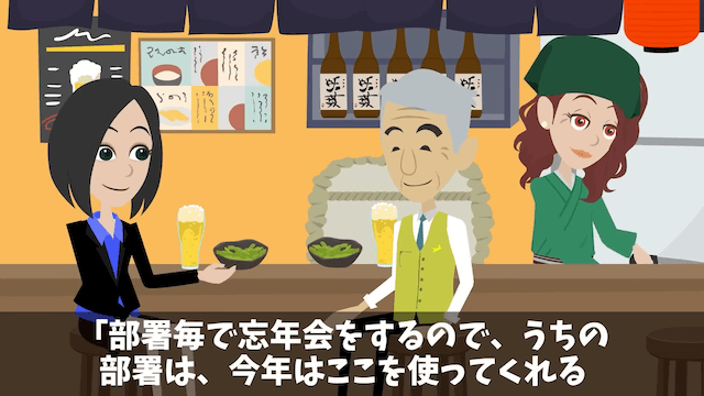 主人公たちの会話を聞いていた常連客に、主人公の上司が忘年会の予約をしてくれたことを伝えた母。 そして座敷は普段使っていないため、掃除をしなければいけないと話します。