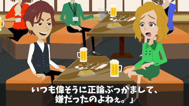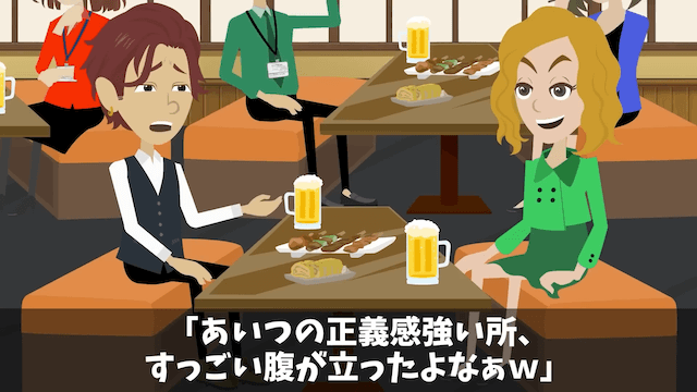 激怒した主人公は、ある人物に電話をかけて事情を説明しました。 一方、上司たちはだまされた主人公を笑い、主人公の悪口を言い合います。