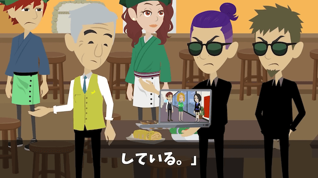 社長は会社に防犯カメラが設置されていることを上司たちに伝え、男性に指示をして映像を用意させます。 防犯カメラの映像には主人公たちの会話が映っていて、主人公がきちんと料金の説明をしている証拠になりました。