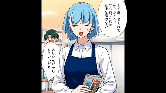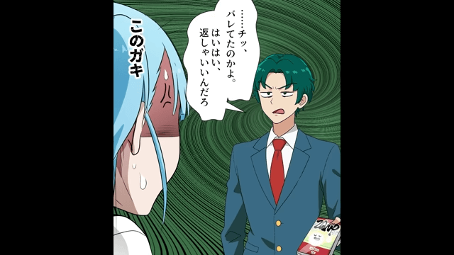 主人公は万引きをした高校生に「お会計済んでない商品、鞄の中にあるでしょ」と声をかけます。 すると高校生は「チッ、バレてたのかよ。はいはい、返しゃいいんだろ」と言って謝ろうともしません。