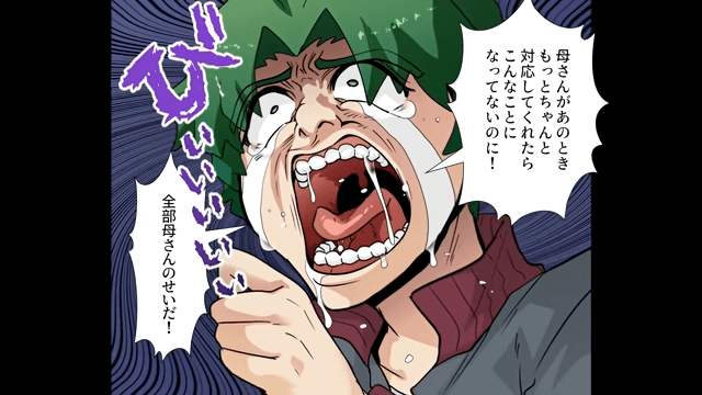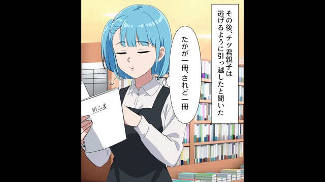 どこに行っても笑われるようになった高校生は「全部母さんのせいだ!」と母を責めます。 そして、高校生の親子はそのまま逃げるように引っ越したのでした。