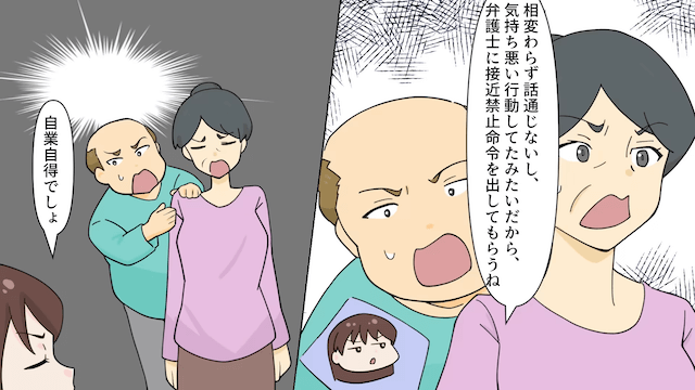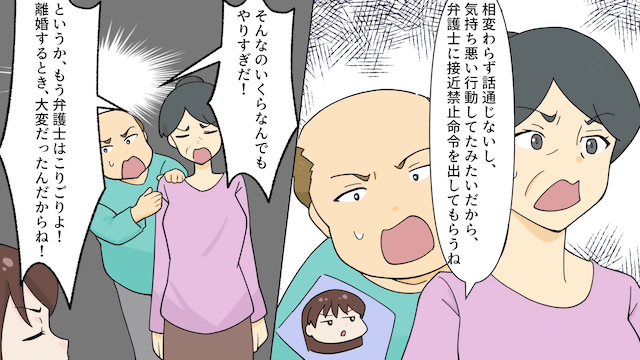 そして何度も復縁をお願いしてくる2人を突き放し、主人公は弁護士に頼んで接近禁止命令を出してもらうことにしたのでした。