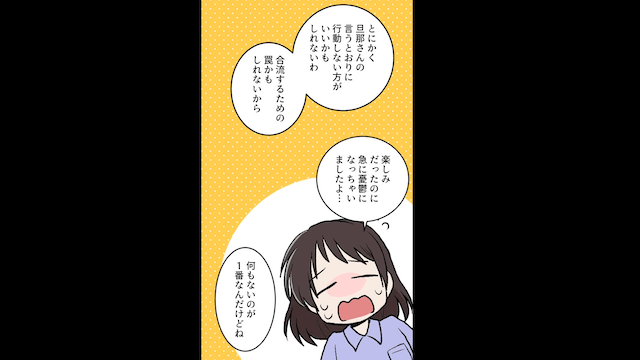 スーパーで主人公と義母が言い合いをしていると、義母の友人がやってきて主人公の味方をしてくれました。 そして後日、夫に旅行を提案された主人公は嬉しい気持ちになり、義母の友人にも旅行することを伝えて…。