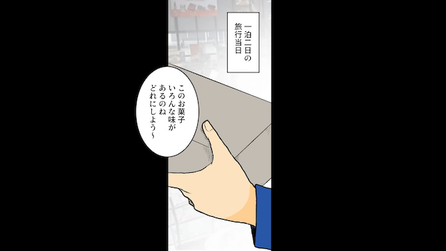旅行当日、お土産をゆっくりと見ていた主人公は、夫の様子がどこか不審であることに気がつきました。