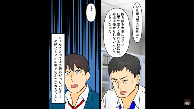 これまで夫の社宅に住んでいた主人公は、娘と家を出るときに夫が家事や育児をしなかったことを近隣住民に話しておきました。 すると夫の最低なふるまいは会社でも噂になり、なんと夫の昇進が取り消しになってしまったのです。