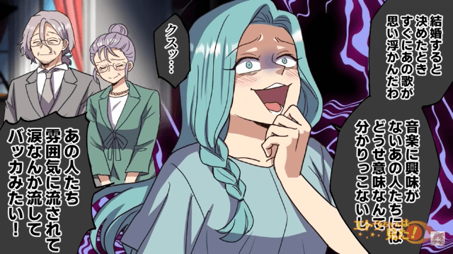 いとこの妻は両親の束縛によって友人を作ることも叶わず、唯一好きになれた歌のことだけは諦めきれず音楽大学へ入ったのだと主人公に話しました。 そしていとこの妻は結婚が決まり、両親への復讐としてあの歌を歌うことに決めて…。