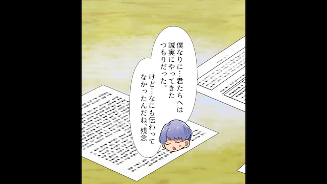 今まで元妻や息子に誠実に向き合っていた主人公は、元妻に何も伝わっていなかったことが残念だと感じて…。
