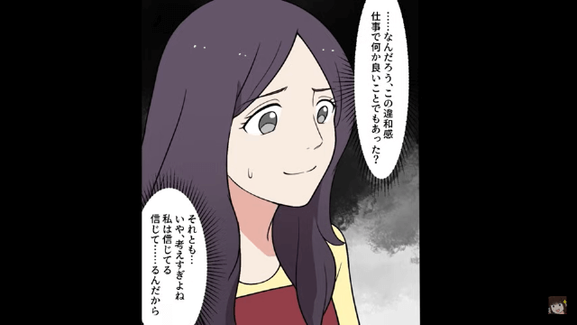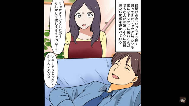 ある日、夫は帰宅後、これまでとは打って変わって嬉しそうな笑顔を浮かべていました。 そして主人公は夫のことを信じようと思いつつ、強い違和感を抱いてしまって…。