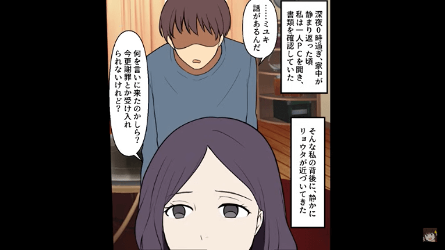 主人公は夫の会社の株主であることや、独身時代の貯金でこの家を買い取ろうと思っていることを夫に話しました。 すると夫は過去を後悔しているかのように、主人公に「俺、会社辞めようと思ってる」と言ってきたのです。