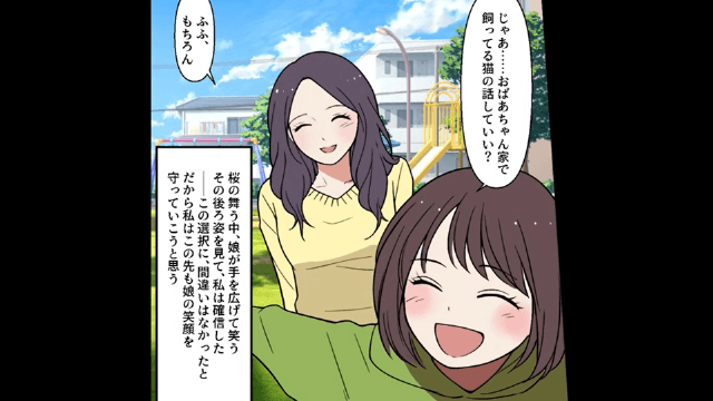 主人公と離婚した夫は会社を解雇されたうえ浮気相手の婚約者から慰謝料を請求され、すべてを失うことに。 そして娘との穏やかな日々を勝ち取った主人公は、これからも娘の笑顔を守っていこうと心に決めるのでした。